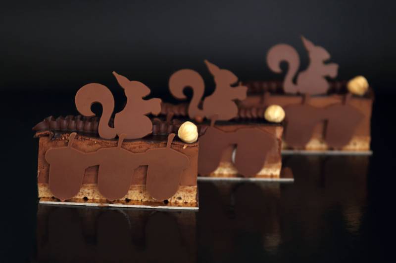 Pour votre plus grand plaisir, nos pâtisseries REYNIER à Carry-le-Rouet et FORNASERO CHRISTOPHE à Ensues-la-Redonne vous proposent un entremet Mousse chocolat et Feuillantine de noissettes.